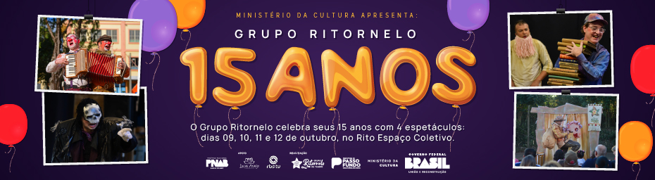 Produção: AG Empreendimentos Sociais e Culturais Ltda - ME - Fone: (54) 999 761 773 Email: agempreendimentosculturais@gmail.com & contato@gruporitornelo.com.br